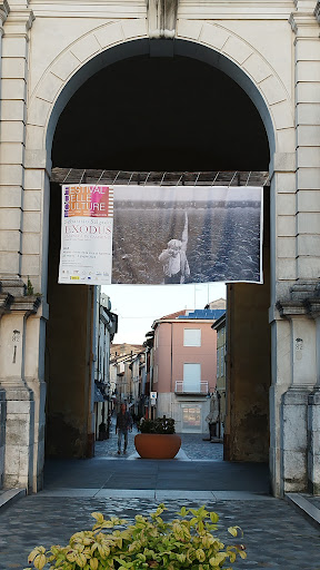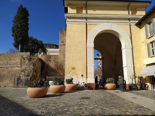 Accanto alla porta si trova un giardino pensile e un monumento in ricordo di Pier Paolo d’Attorre, fine intellettuale ed ex sindaco della città, progettato dall’artista cileno Mathias Biehler, che rappresenta una panchina su cui poggiano un...