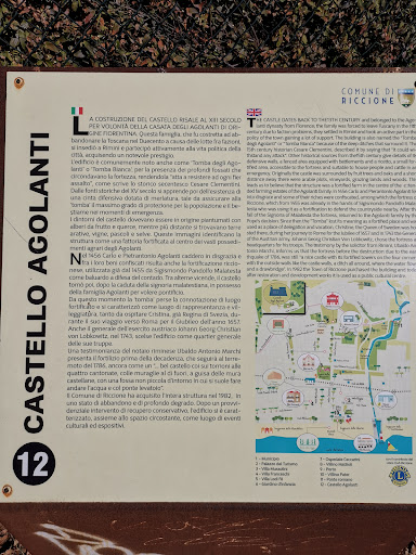 Β Β Β Read moreOggi 6 settembre 2020 alle ore 11 sono stato presso questa Struttura la cui costruzione, a quanto racconta la didascalia bilingue posta all'ingresso, risale al XIII Secolo per volontΓ della Casata degli AGOLANTI di origine fiorentina. Il Comune di Riccione ha acquistato l'intera struttura nel 1982, in uno stato di abbandono e di profondo degrado. Dopo un "provvidenziale" intervento di recupero conservativo, l'edificio si Γ¨ caratterizzato, assieme allo spazio circostante, come luogo di eventi culturali ed espositivi. Quirino Martellini, Presidente della Biennale Internazionale...