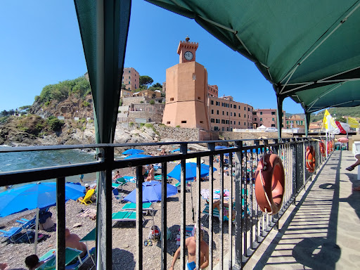 Spiaggia pubblica con doccia...sassi iaia e scoglio.all'ombra della Torre..proprio a giacente all'imbarco toremar...se lasci l'albergo e aspetti il traghetto puoi rilassarti in questa spiaggia ..consigliato le scarpine da sub...su una parte del pontile c'è uno stabilimento balneare gestito da un vero e proprio personaggio conosciuto da tutti...al primo impatto sembra burbero e brontolone ma in realtà infaticabile e disponibile...lui stesso piata i pali che sostengono gli ombrelloni con una mazza ..il suo motto è asciugati....questa parola ha molti significati dipende dalla discussione.(Grande Gino )...io ho pagato 24,00 per due lettini e un ombrellone...si può prendere solo l'ombrellone oppure solo il lettino....la cosa positiva che ci sono le docce quella negativa che non ci sono i...