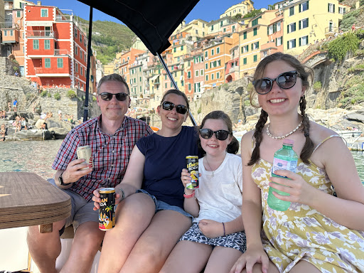 Having never been to Italy before we decided early on that Cinque Terre was going to be one of our stops. After a hot, hectic and fun three days in Florence we were picked up to make our way to Vernazza. Our evening was lovely (after the day trippers left), however we were disappointed to discover that there really wasn’t a sunset to be seen from Vernazza. The following morning we walked to Monterosso in the morning and then took the train down the coast to explore Corniglia before exploring Manarola and meeting up with Maria and Nicola from Hello Cinque Terre. They were super responsive throughout the planning and booking process so the bar had been raised for our time on the boat. The private sunset trip took us along the coast seeing all five villages from the water which gives you that amazing postcard view. This was the highlight of our trip so far and we doubt it will be eclipsed by anything else. I had the opportunity to go swimming with my daughters (10 & 13) in the beautiful blue Mediterranean Sea. The antipasti and drinks were a treat we were not expecting (I don’t always pay attention when booking stuff). We made our way back down the coast and turned to face the...