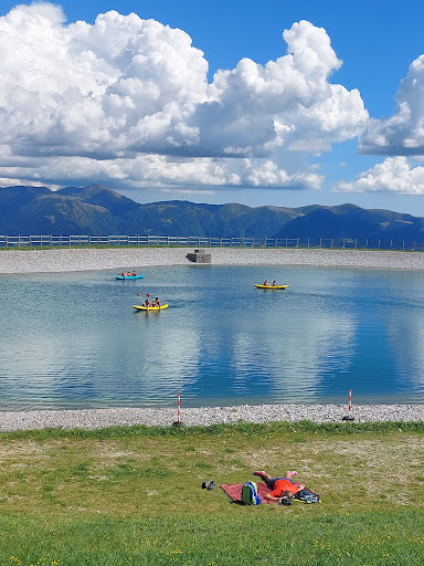 Molto carino vedere le nuvole che riflettono sul laghetto. Disponibili delle canoe per un giro. Si può mangiare pane e salamina/ porchetta (strinu') oppure con formaggio al food truck e noleggiare sdraio sulla spiaggia. Si può salire con la seggiovia (5 euro a/r) ...