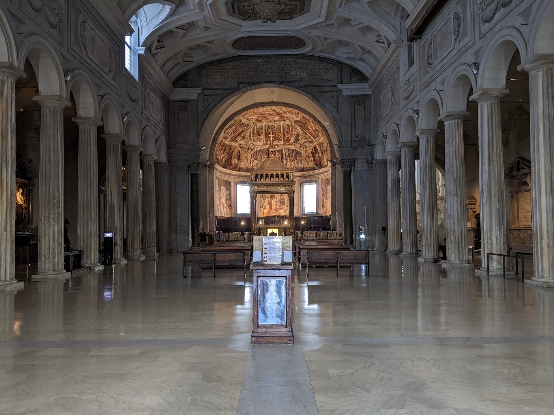 Unlike many basilicas I've recently visited, this one is not overly filled with art and sculpture and tombs (though it does have each of these and each individual item is worthy of attention and perhaps a photo). Rather than an inundation of stimuli making it impossible to take in any one item, whereupon leaving one struggles to recall the experience in any detail, I trust I will be able to recall both what I saw and my impressions of the basilica and its constituent parts.
