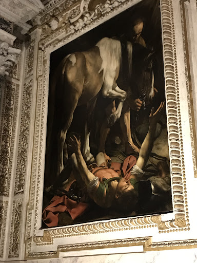 Read moreMost of you have already known everything about the 2 Caravaggio paintings in this church. Unless you're an art major or did extensive Google or YouTube, these 2 paintings are not worthy of your 15 or less minutes. You guys know Caravaggio is a freak right? Ok, he was a great talented freak just like Michelangelo. Yeah, I saw plenty folks walked in and out less then 3 minutes. Here is a little known fact from yesterday afternoon visit 26-10-2016. There is a church "line man" controls the crowds going up to see Caravaggio paintings. His side job is to shush those speaks too loud in the church. But then, he became too loud himself at times. Once he let you in, you've got 15 minutes and he will not let you get back in again. He also will tells you NO FLASH! Which I absolutely agree. Now for those Caravaggio freaks out there, these 2 paintings are very worthy of your ONE EU$1 to turn the light on so you (and others) can see these paintings. Yes, there is a coin box on the Right hand side of the Chapel, you need to deposit EU$1 for about 5 minutes worth. My suggestions are: prime your camera (no flash again! or get a decent low light camera), preplan your positions in your head (get different views) out side of the chapel. Once you get in, you've already know what position to take your pictures and don't forget to selfie yourself to death, there is no shame in it. After you've paid lots money to get to Rome, do your selfies! My money saving tip is to team up with other tourists, I paid EU50cents and he did the other half, now we both get to take all the pictures and other whom did not pay also get to have some good time. Be nice, don't fight to get to the selfie positions, you're inside of a...