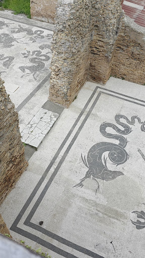 The mosaics in the Baths of Neptune are not to be missed when exploring the archeological site of Ostia Antica. It would have been easily missed if not for the map I purchased for a few euros at the ticket office. It also helps to listen to the Rick Steves' audio guide prior to your visit.