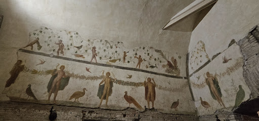 • Aula dell’Orante per la presenza di un dipinto di una giovane donna con le braccia allargate nell’atto di una preghiera