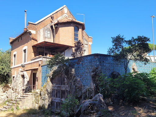 Entrando dall'ingresso principale ad angolo tra Aurelia antica e via di San Pancrazio non si può non notare una strana costruzione che non si capisce se sia moderna o meno, aggiunta o originale. Si tratta in realtà di un edificio storico, realizzato nel 1700 per essere la casa del portiere di Villa Corsini e costruito niente di meno che sopra alcuni sepolcri romani. Nel 1882 Andrea Busiri Vici ci mise mano e aggiunse il corpo esagonale sulla terrazza, e soprattutto la cortina in laterizio, bugnato e maioliche di rivestimento. Lo stile è indiscutibilmente quello eclettico neomedievale che era tanto in voga in quell'epoca e da cui deriva il nome Chalet Svizzero. Andrea Busiri Vici realizzò anche l’ingresso del parco a scogliera, rifacendosi alla scogliera rustica d’ispirazione berniniana che potete ammirare nella vicina Villa del Vascello e per completare l'opera ci incastrò in mezzo le palle di cannone della battaglia del 1849. La parte delle maioliche è particolarmente bella ma un po' più di cura e una maggiore valorizzazione sarebbe auspicabile. Di fatto a uno sguardo distratto non si riconoscono subito i vari stili inseriti e le maioliche sembrano fatte per tamponare chissà quale abuso edilizio. Quando entrate date un'occhiata. Utili info? Allora lasciate un like alla recensione e guardate le altre...