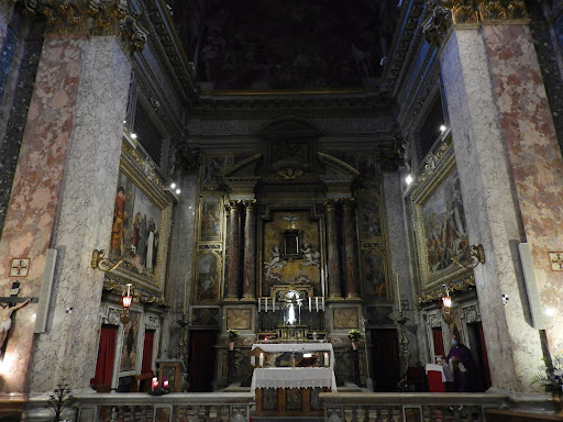 Gian Lorenzo Bernini designed the high altar and the Alaleona Chapel, which includes the sculptural group of Jesus and Mary Magdalene.
