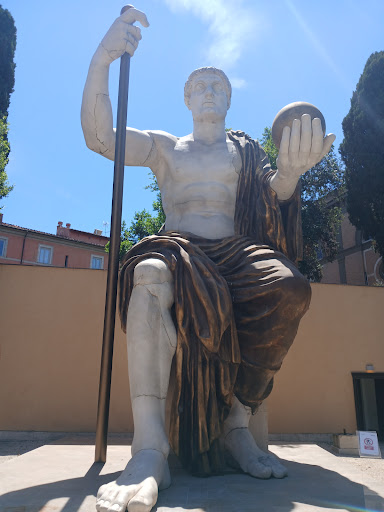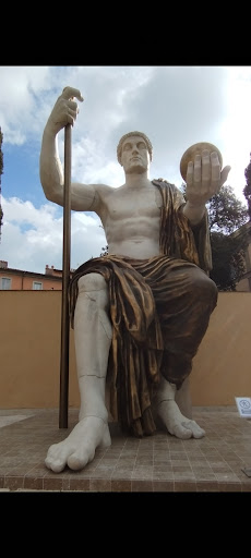 Read moreGià....Ovviamente era e resta la gioia degli amanti dei selfie che qui trovano la massima espressione di ciò che è fotografabile per poi essere esibito come trofeo. Di fatto è una buona ricostruzioni tridimensionale che costituisce una ipotesi abbastanza credibile di come doveva essere la statua alla quale appartengono i 9 frammenti marmorei giganti presenti nel cortile dei musei capitolini (fatti portare qui da Papa dietro suggerimento niente di meno che di Michelangelo dopo essere stati scoperti nella basilica di Massenzio e attribuiti erroneamente alla statua colossale di Commodo). Di recente anche un decimo frammento, ancora al Parco archeologico del Colosseo, è stato ricondotto alla statua e raggiungerà gli altri nel cortile di palazzo Senatorio. Alta 13 metri e realizzata con un sofisticatissimo sistema di stampa 3D è stata realizzata per una esposizione lo scorso anno ma dall'inizio del 2024 fa bella mostra di sè nei giardini di Villa Caffarelli. Per realizzare questa ipotesi di ricostruzioni sono state analizzate le tecniche costruttive di altri colossi, per imitarne e riprodurne fattezze, caratteristiche strutturali e proporzioni. Questo imperatore è rappresentato come Giove ed è collocato non a caso accanto al Tempio di Giove Ottimo Massimo e i cui resti si possono ammirare all'interno dei Musei, nella cosiddetta Esedra di Marco Aurelio. La principale nota positiva della statua è che riproduce non solo il bianco del marmo ma anche il colore della veste, riportando alla corretta connotazione delle statue antiche che erano per lo più colorate, soprattutto per essere dipinte e a volte per aver utilizzato diversi tipi di marmo. Se siete in zona, ovviamente, vale la pena fare un salto e immortalare questo bell'esempio di anastilosi contemporanea, ricordandovi però di andare a vedere i pezzi originali che da soli emanano molto più fascino di questo originale posticcio ricostruito. Per visitarlo proseguite lungo la strada che inizia sulla destra salendo sul Campidoglio. Utili consigli? Allora lasciate un like e guardate le altre recensioni fatte su...