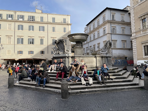 As the evening sets in, we grabbed an Aperol Spritz from a nearby café, settled into our seats, and simply watched the world go by. The golden glow of the Basilica di Santa Maria in Trastevere illuminated the square, making the moment feel almost timeless. The mix of history, local energy, and the relaxed Roman pace makes this piazza one of the most enchanting places to soak in the city’s essence.