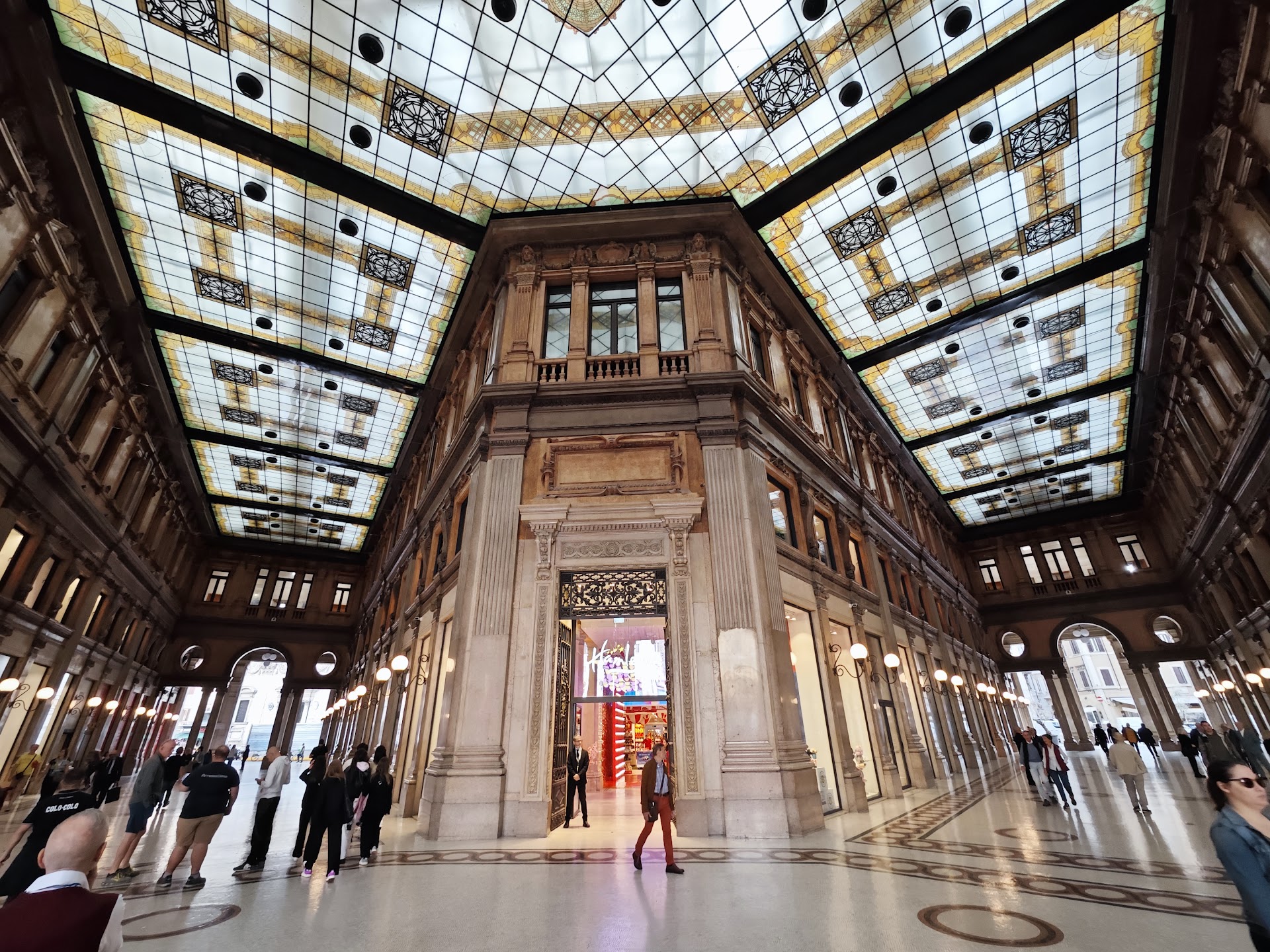 Bereits beim Betreten der Galleria wird man von ihrer majestätischen Atmosphäre und den kunstvollen Details überwältigt. Die hohen Glasdecken lassen natürliches Licht in den Raum strömen und schaffen eine helle, offene Umgebung, die sich perfekt mit den Marmorwänden und kunstvollen Mosaikböden ergänzt. Die Galleria, die Anfang des 20. Jahrhunderts erbaut wurde, spiegelt den Glanz und die Eleganz des frühen 20. Jahrhunderts wider und vermittelt das Gefühl, in einer vergangenen, aber luxuriösen Ära zu verweilen. Die verzierte Fassade und die kunstvollen Dekorationen im Inneren machen sie zu einem der schönsten Bauwerke Roms, das nicht nur zum Einkaufen, sondern auch zum Staunen einlädt.