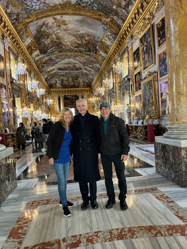 While on our honeymoon in Rome, our first museum visit was the Colonna Palace which is one of the oldest and largest private palaces in Rome. It was spectacular! The Colonna Palace is a true gem in Rome and one of the most memorable experiences of our entire trip! The paintings, radiant marbles, frescoes, chandeliers and my favorite, the golden framed mirrors with magnificent paintings of flowers and mischievous winged angels. We met a beautiful museum guide at the Palazzo Colonna named Rebecca Harden. Rebecca had a wealth of information to share and was so generous with her time. She informed us of all the artists who contributed to the spectacular beauty of the gallery including Pintoricchio, Reni, Rosa, Tura, Carracci, Tintoretto, Bronzino, Veronese, Guercino and Vanvitelli. Rebecca also willingly shared the creation of my favorite superb mirrors and how Carlo Maratta, Giovanni Stanch and Mario de’ Fiori collaborated to create these masterpieces. I asked Rebecca if she would jump into a picture with us in front of the mischievous angels and she was more than happy to join us. Rebecca also informed us of the other areas of the palace which were delightful to observe. Then, as we were strolling along, we actually met the Prince Don Prospero Colonna! Prince Prospero Colonna was very gracious and kind. We told him how it was our honeymoon and first time in Rome, Italy and how we absolutely loved his palace.The Prince then agreed to take a photograph with us. Again, one of the highlights of our entire honeymoon. We continued on our journey as there is so much to see at this palace it is hard to share it all. Not only can you spend hours within the walls of the palace, but outside there are awe-inspiring gardens. We will definitely make it back soon to Rome, Italy and the Colonna Palace.Thank you Rebecca Harden and Prince Don Prospero Colonna for contributing to make our honeymoon even...