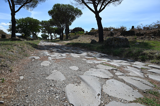 In questo tratto si vedono ancora i segni lineari che sono stati lasciati dalle ruote dei carri nel corso dei secoli.