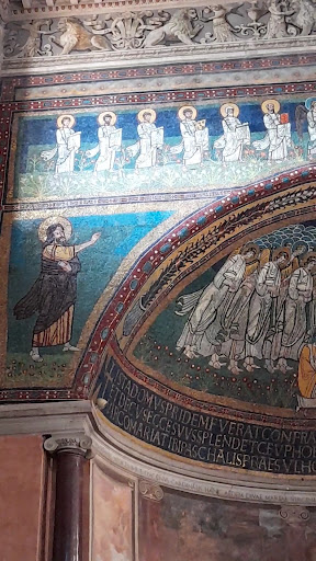 Fu papa Pasquale I, IX ssecolo, a trasformarla in una vera basilica a tre navate, e con splendidi mosaici in stile bizantino, in un’epoca di rinascita artistica.