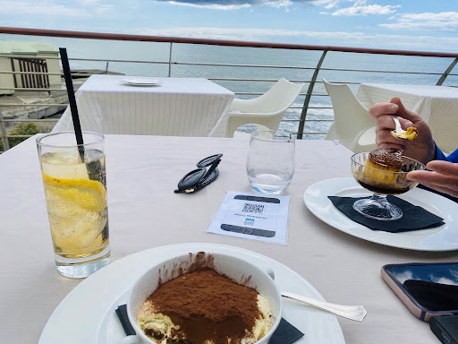 We ordered a soup and were charged for two portions of bread which was not served. As we do not speak italian, we did not know what „pane” means at first. Only realised at home. There was an organizational mess and nobody to print a bill. We had to wait a while at the counter before „Roberto” appeared with our bill after being called several times by a few waiters. No wonder why they mess up the bills. Our waiter wore a filthy west and trousers with staines. Absolutely disgusting look. Tiramisu was served in an unappealing way, in a cup. Too loose structure in my opinion, too much cream, not enough flavour. Creme caramer partialy overcooked, again dull flavour. Seafood was excellent though. The seaview from the terrace was lovely. Unfortunately I would not visit again and do not recommend as the service is...