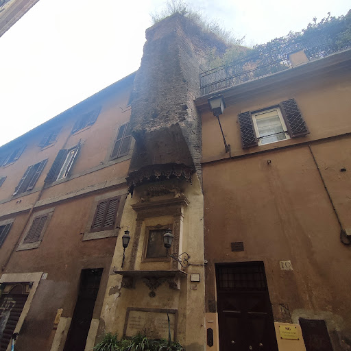 Read moreI resti ai quali fa riferimento il toponimo della zona (Arco della Ciambella) deriva dal primo edificio termale a carattere pubblico a Roma, le Terme di Agrippa, inaugurato da Agrippa nel 12 a.c. Di questo enorme complesso purtroppo è giunta fino ai giorni nostri solo una piccola parte della grande sala rotonda (che probabilmente corrisponde al calidarium, la zona dove "si sudava", NdR) tagliata di netto nel 1542 con la costruzione di via dell’Arco della Ciambella: la metà della sala, in origine circolare con un diametro di 25, è nota appunto come Arco della Ciambella almeno dal 1505 anche se poi le persone tendono a identificare con Arco solo la parte di volta che è stata tagliata dalla strada e del quale si intravede l'attacco della chiave di volta nel mammozzone più sporgente, non quello dove è stata inserita l'edicola della Madonna. Questa importante struttura scomparve poi nel 1621 a causa dei lavori che Gregorio XV fece realizzare per sistemare la zona e ora è conservata solo nella sua metà per un’altezza di oltre 10 m ma non ben visibile dalla strada a causa di un palazzo che vi sorge nel mezzo. Un peccato. Comunque se vi ho almeno incuriosito fate un giro e se vi sono stato utile...