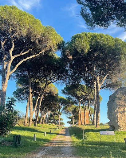 Questo importante luogo è attraversato per circa 500 metri dall’antica Via Latina, la quale in alcuni tratti è ancora pavimentata con gli antichi basoli, che rendono ancora più suggestivo questo luogo, insieme i filari di Pini che la accompagnano, danno l’idea di come era questo luogo originariamente.
