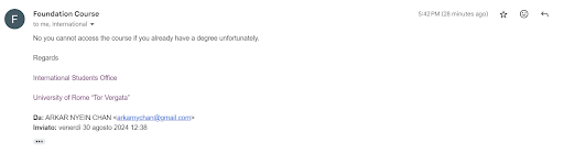 Read moreDespite the quality of cirriculum, they change the tuitition fee plan without any discussion with students. Especially during Covid Pandemic instead of supporting students they cancel ISEEU - tuitition fee based plan, which means a plenty of students have to modify significantly their study plans abruptly. Moreover, changing tuition fee plan is not the first only thing they did towards their students. Whenever Tor Vergata university wanted to change something, they did it without any discussion with students. It is the biggest joke because they always tell us that: "we are family". If they keep raising the tuition fee or show no sympathy toward international students, they would never reach their goal to be "the most international university"....