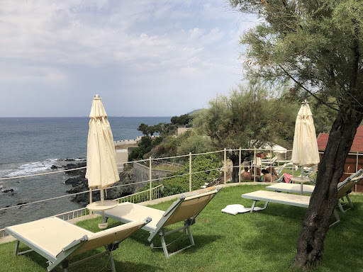 Read moreIl bagno si sviluppa all'interno di una Cala dove un terrazzamento ha permesso di creare svariati posti per lettini e ombrelloni. Per € 35 a persona ti viene dato cabina, lettino e ombrellone. La piscina è veramente bella con una vista mozzafiato. Il resto compreso il ristorante (altri € 35 circa) e nella media. Secondo me si può provare 1 volta. Ho avuto successivamente la sfortuna di andare in questo posto... personale impreparato e soprattutto molto ignorante e cafone per non parlare del signore vestito di rosso con atteggiamento da velista fallito, prima parla a sproposito urlando davanti a tutti i bagnanti poi gli viene fatto notare che il cartello posto all'ingresso del bagno NON cita assolutamente niente dei divieti di cui lui si riempie la bocca... a quel punto NON sa più che fare e chiede scusa.... molto probabilmente NON sa leggere. Insomma alla fine dopo aver chiesto se potevamo bere a bordo Piscina un bicchiere (in plastica) di acqua al proprietario del Bar, al Bagnino presente a bordo Piscina e avendo avuto da tutti una risposta positiva non contenti abbiamo letto se il cartello a bordo piscina parlava di questo divieto (NON ne parlava) ci siamo ritrovati davanti questo "signore" urlante e minaccioso.... Beh eravamo in 6 abbiamo speso € 210 per una giornata di relax al mare fate Voi le...
