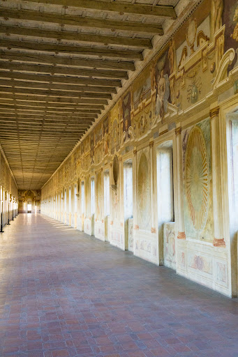 Read moreGalleria degli Antichi viene anche chiamata Corridor Grande e fa parte del Palazzo Giardino, un edificio storico di Sabbioneta, che si trova nella parte meridionale della provincia di Mantova. La maestosa galleria, concepita ad arcate in cotto al piano inferiore, è lunga m 97, tra le più lunghe d'Italia, dopo la Galleria delle carte geografiche del Vaticano e la Galleria degli Uffizi di Firenze. La maestosa parte superiore della galleria intervallata da numerose finestre ed era stata concepita per ospitare la collezione di marmi antichi del duca Vespasiano Gonzaga. Fu affrescata da Giovanni e Alessandro Alberti di Sansepolcro, dando, ai due lati estremi del lungo corridoio, una sensazione di continuità nella prospettiva. È possibile fare un biglietto cumulativo per i principali monumenti della città presso l' ufficio turistico che si trova al piano terra del Palazzo Giardino. C'è una zona di parcheggio gratuito nei pressi sia in ingresso della città che di fianco al giardino che costeggia la...
