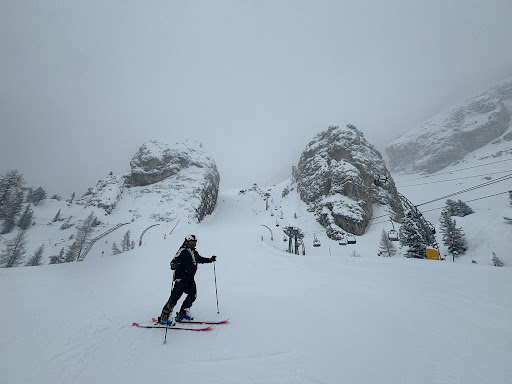 ON-PISTE SKIING: Skiing on piste is superb, the grooming, italian fine; the lift system is very good, with many fast lifts, and gondolas, well-managed. The Sella Ronda circuit is great for transiting from around most of the areas but note places like Cortina, will require a short shuttle, car or bus ride, All villages have charming idiosyncrasies, like Cortina has serious on piste exposed high altitude steep in-bounds terrain, less crowds, and great grooming. Marmolada Glacier is a great place to ski on and off piste. Selva Val Gardena is the most crowded.