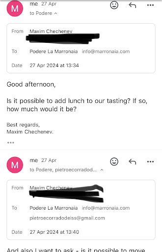 Visiting Podere La Marronaia was the highlight of our trip to San Gimignano! Nestled in the picturesque Tuscan countryside, this family-run winery offers an enchanting blend of stunning views, exceptional wines, and warm hospitality. From the moment we arrived, we were welcomed like family by our wonderful hostess, Victoria, the daughter-in-law of the owners. Her warmth and knowledge made our visit truly special. The wine tasting experience was nothing short of spectacular. We sampled a variety of organic and biodynamic wines, each one more delightful than the last. Victoria guided us through each tasting, sharing fascinating insights about the winemaking process and the unique characteristics of their wines.