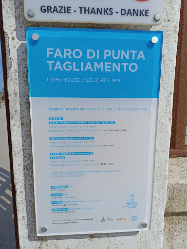 Read moreFaro di punta Tagliamento è raggiungibile a piedi o in bicicletta dalla via del faro. Il faro semplicemente stupendo. In questo periodo è aperto alle visite con una mostra sul faro ed una piccola mostra di fotografica. L'ingresso è gratuito, il personale presente gentile e cordiale, possibilità di avere del materiale e pubblicazioni dei luoghi. La mostra storica del faro molto bella diversi i documenti proposti, merita davvero. Un video proiettato in una saletta riporta le interviste di persone che per lavoro o vita hanno abitato il faro. La struttura ben tenuta, non accessibile la parte del faro in quanto sotto tutela militare. All'estero possibilità di lasciare le biciclette negli stalli pubblici, eventualmente munirsi di lucchetto e catena. Bagni presenti e distributori di bibite automatici. La vista esterna stupenda verso il mare e le spiagge antistanti da vedere anche attraverso le finestre, una sensazione molto bella.