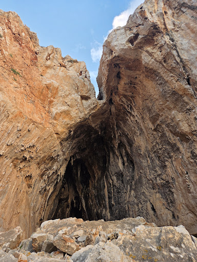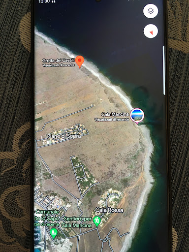 Read moreSentiero non molto chiaro da trovare perché con Google arriverete ad una stradina con catena !!! Ovviamente non è lí l’accesso !!!! Non vi avventurate su quel sentiero!!!!! Ci si arriva con più chiarezza da Cala Mancina (via calamancina verso L’hotel Relais de Nereidi . A questo punto aprendo Google Maps con impostazione ‘Rilievo’ vi sarà tutto più chiaro !!!(Sentiero per Cala Mancina è Grotta dei Cavalli) Abbandonando la strada, sulla destra vi immettere su un sentiero , subito a sinistra con auto troverete percorso sterrato di terra rossa è roccie …. Dopo poco potrete posteggiare su uno slargo è iniziare una camminata di circa 20 minuti per Cala Mancina ( bellissima ) altri 30 per la Grotta !!! Solo scarpe da trekking o tennis perché proprio per salire sulla grotta ci sono massi molto grossi !!! È di lì una vista sul golfo indimenticabile!!!! Spero sia stata utile la mia...