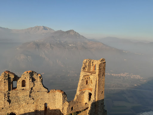 Vista in data 13/09/2025 in gita in comitiva .Magistralmente guidati da Taddeo,giovane studente ,nonché guida volontaria che ci ha accompagnato nel percorso raccontandoci la storia dell’abbazia con competenza e con aneddoti ,per non apparire troppo schematico e non appesantire il discorso con terminologia troppa tecnica.Torre del XIII secolo,ubicata all’interno della Sacra ,alta circa 20 mt,venne distrutta in gran parte per opera di terremoti succedutisi nell’arco dei secoli..Essa diede corpo alla fantasia popolare che volle spiccato da lì il salto della bell’Alda per sfuggire ai soldati di ventura.,la giovinetta di sarebbe buttata nel sottostante burrone rimanendovi illesa.Volle riprovarci per vanità e denaro,ma il suo corpo si sfracellò...
