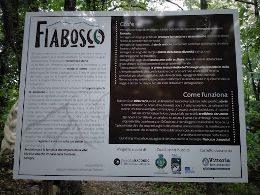 L’idea centrale del progetto è quella di portare avanti il legame tra uomo ed ambiente ponendo al centro del dialogo la salvaguardia dei beni immateriali abruzzesi come la fantasia e le storie antiche - spesso dimenticate - creando la prima area protetta dell’immaginario d’Italia. Fiabosco vuole salvaguardare l’identità ed interrogarsi e tutelare la fanta-diversità...