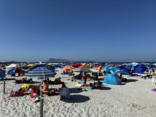 Read moreVisited this beach during a windy afternoon. It is very packed with only 1-2 ft of distance between towels/beach mats. There is music by the restaurant if you like to vibe with house music with live percussion accompaniment. But otherwise, if you want to be away from loud crowds, I suggest walking further south near the campsite. Parking is €2/ hour flat rate. So if you stay for 2 hours and 20 minutes- you will be charged for 3 hours. It is the most expensive parking I have encountered and I'm not sure what you pay for since shower and toilet facilities are with the restaurant. The beach is sandy with light grey sand almost looking like white if you edit the photos. Overall, if you want to relax, this is not the place for you. But if you want a nice sandy beach in San Teodoro that doesn't need a booking, and when the ferry to Tavolara is cancelled, this is your next...