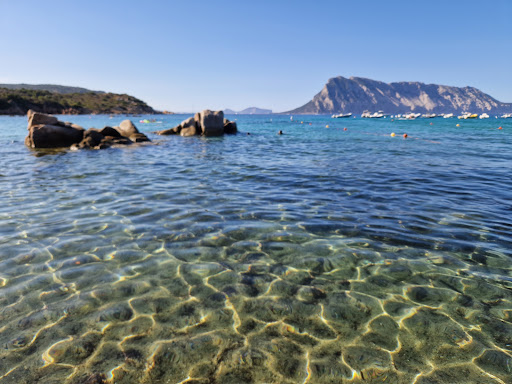 Read moreViste le recensione lette mi sono recato in questa cala di mattina presto..terminato il sentiero mi si presenta una piccola ma gradevole caletta con sullo sfondo la mastodontica isola di Tavolara e con un mare meraviglioso che interagiva con degli scogli disegnati dal vento. La Caletta era circondata da scogliere di colore variopinto e dalla tipica vegetazione sarda. La permanenza è stata ottima sino a quando afflusso dei bagnanti ha reso la Caletta affollatissima sia in spiaggia che in acqua e questo ha fatto si che tutto il fascino di prima mattina sia svanito in un attimo...per giunta si presentava anche un team di animazione decisamente invadente e sgradevole.Ultima nota purtroppo negativa al 30 giugno ancora l'unico bar presente era...