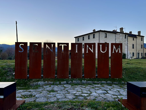 Dell’antica città romana sono visibili le due tratti di strada, un cardine ed un decumano, i resti di un impianto termale pubblico urbano e di uno extra-urbano, colonne di granito, fondamenta, tracce di pavimenti ed una bottega di fusione del metallo. La città di Sentinum che noi oggi conosciamo risale all’epoca romana; sorge su un altopiano di formazione alluvionale, alla confluenza del torrente Sentino con il Marena, a poca distanza dalla via Flaminia. Circa lo statuto abbiamo informazioni soprattutto dalle numerose epigrafi rinvenute: la città era un municipio, ascritto alla tribù Lamonia e fu compresa nella VI regione augustea, Umbria. Le vicende storiche che gli autori antichi ci tramandano si incentrano su due principali...