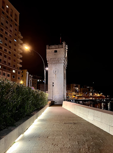 🏰 La torre domina l'area della Vecchia Darsena, la zona più frequentata e animata delle serate savonesi. Dismessa come scalo commerciale negli anni ’70 del Novecento, è stata ristrutturata (1999-2010) dall’architetto catalano Ricardo Bofill, tra i più noti esponenti del postmoderno, in collaborazione con professionisti italiani e savonesi, ed è oggi adibita a porto turistico (150 posti barca). Il progetto di riqualificazione ha interessato anche il quartiere del Molo e le vicine zone ex industriali. Perno della nuova sistemazione è il Terminal Crociere, che ha al suo centro il Palacrociere, la stazione marittima dove fanno scalo tutte le navi del gruppo Costa. La struttura, progettata dallo stesso Bofill, si articola su tre livelli, con un’area complessiva di circa 10.000 metri quadri, di cui 1200 a terrazza sul mare. È uno spazio multifunzionale, attrezzato per ospitare eventi culturali e congressi. Grande attenzione è stata riservata ai servizi al viaggiatore (area bambini, Internet Caffè, punto di ristoro), alla sicurezza e alla tutela dell’ambiente. Gli spazi interni sono arredati con opere di artisti savonesi, ispirate ai viaggi di Leon Pancaldo, e con ceramiche di Albisola. Il quartiere del Molo ha il suo centro vitale nella calata Sbarbaro e nella scenografica piazza d’Alaggio, sede di spettacoli e manifestazioni culturali. Un ponte pedonale mobile lungo oltre 40 m, a struttura metallica dipinta di blu, collega l’area al centro storico della...