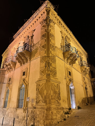 Read moreEdificio Barocco del XVIII secolo tra i più rappresentativi della città. Presenta due facciate unite da un cantonale diamantato, su cui ci sono collocati lo stemma di famiglia su due teste di moto in alto e una statua di San Giuseppe in basso. Le finestre e le porte del piano inferiore sono arricchite da mascheroni posti al centro dell'arco di volta, mentre il piano superiore è ornato da bellissimi balconi con inferriate curve, sostenuti da mensoloni con...
