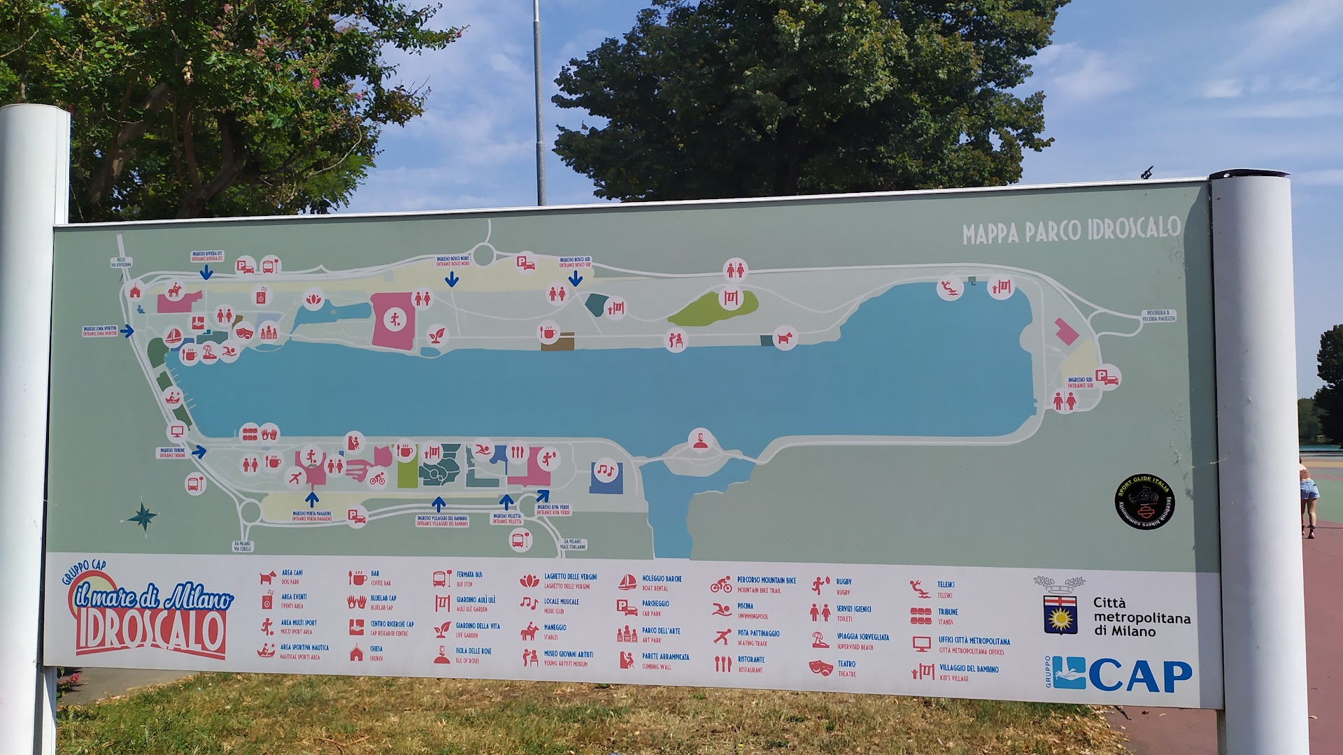 Read moreQuesto ingresso è dalla parte dei parcheggi accessibili e di fronte al Luna Park (che non fa parte dell'Idroscalo). All'ingresso, c'è la zona di pattinaggio, skating e BMX. A destra si va verso l'isola delle rose, a sinistra verso l'associazione canottieri Idroscalo dove noleggiare una canoa o fare SUP. L'anello da percorrere in bici o a piedi è lungo 8 km . Ci sono piú locali per il pranzo o aperitivo. Ma anche molti tavoli da Picnic per Chi vuole portarsi...