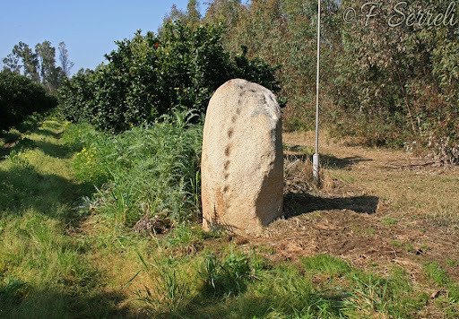 Read moreÈ stato un po' difficile arrivarci perché il navigatore ti porta in un punto sbagliato. Purtroppo non è ben segnalato, ma grazie all' aiuto di una rete squisita di persone di Serramanna, e usando wikimapia, ci sono arrivata. Una volta lì, ci si trova in un agrumeto privato, ma vicino al cartello la rete è abbassata e mi hanno autorizzata ad entrare. Il menhir è subito lí dietro la rete. Armatevi di pazienza e...