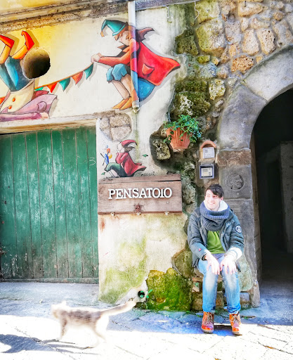 Murales e installazioni artistiche: un viaggio tra le piccole strade della frazione di Sessa Aurunca “Sembra uscito da un libro di favole”. E’ il primo pensiero che ti balena in mente quando il tuo sguardo incrocia quello di Giovanni Casale. La barba lunga, una simpatica salopette e il sorriso che traspare anche dietro la mascherina. Il suo abbigliamento ricorda un po’ il cappellaio matto di Alice nel Paese delle Meraviglie. Del resto anche lo stesso Valogno, frazione di Sessa Aurunca, è un po’ il borgo delle meraviglie. Le sue stradine, i suoi muri, i suoi piccoli cortili da qualche anno ospitano opere di street art e installazioni d’arte con il chiaro obiettivo di “colorare il grigio dell’anima”. Giovanni Casale – Valogno Borgo d’Arte Qui a 400 metri sul livello del mare, a poco più di 10 chilometri dal Vulcano di Roccamonfina, tra le stradine strette di Valogno vivono appena 89 persone, di cui più del 70% ultra 65enni. Non c’è un alimentari, non c’è un bar, solo case vuote e pochi anziani. Un paese che rischiava di inserire il suo nome nella lunga lista di borghi fantasma disseminati un po’ lungo tutto lo Stivale, dove, appunto, il grigio si allargava a macchia d’olio. Insomma un “anti-luogo”. A mantenere vivo questo posto è l’intuizione di Giovanni, che dalla “caciara” del Tufello (quartiere di Roma), si trasferisce nel silenzio di Valogno e realizza l’Associazione culturale Il Risveglio per “colorare il dolore della malattia di un figlio, che ci ha portati dall’essere una famiglia stile ‘Mulino Bianco’ a fare i conti con la vera esistenza fatta di preghiere e imprecazioni”. Tanto coraggio e non pochi sacrifici, per dare vita ad un’autentica “chiamata alle arti” coinvolgendo le persone che popolano il borgo. Ascoltando la sua storia ti viene da pensare che forse un po’ matti bisogna esserlo per davvero. “Abbiamo individuato nel grigio il dolore: come può essere una malattia, un lutto, la perdita di un amico, di un posto di lavoro; dinamiche che accadevano e accadono al 90% delle persone che decidono di vivere e non di esistere. Sentimenti che in maniera trasversale accomunano gli abitanti e la gran parte delle persone che ci vengono a trovare – ci racconta Giovanni. Noi abbiamo provato a vedere il grigio dal punto di vista artistico come una non tinta, un non colore”. La sua casa, non è soltanto sede dell’associazione, ma un posto aperto a tutti. Oggi Valogno è un luogo di incontri, di storie e scambi di idee. Grazie all’associazione, si avvia un percorso di riappropriazione dell’identità personale e territoriale, da parte di chi vive da queste parti. “Il percorso prima dei murales è stato quello di recuperare l’identità di questo luogo, riportando alla luce i portali del borgo, nessuno dei quali è più coperto dal cemento. Oggi al suo interno conta 96 installazioni d’arte, una quarantina di murales e il resto degli interventi in ceramica o arti applicate” – ci spiega Giovanni, che insieme alla moglie Dora, hanno contattato gli artisti (tutti pagati dall’associazione), scegliendo di comune accordo, in una prima fase del progetto, i temi del disegno. Cosa che oggi avviene in maniera autonoma: gli artisti locali da soli si preparano il muro e lo dipingono o si organizzano per realizzare nuove installazioni. L’opera si adagia sul contenuto, tanto che nel borgo di Valogno è possibile ammirare un presepe con tanto di linguaggio per i non vedenti, messo all’esterno di un’abitazione che accoglie anche un...