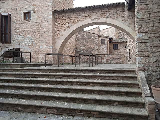 Read moreIn una via trasversale del corso principale di Spello, segnato da un cartello, si trova questa piccola piazzetta, con scalinate, su cui svetta un loggiato in legno con della bell'edera che si arrampica sulla parete. Consiglio assolutamente di dedicare qualche minuto della passeggiata alla visita di questo piccolo angolo di Spello: merita! In zona ci sono anche alcuni locali che quasi certamente si appoggiano alla piazza per sfruttarne lo spazio in orario...