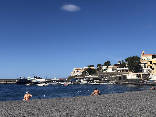 Read moreCute little beach, pebbly but no water shoes needed to go in. Hardly anyone is using the boats in the port off-season so the water's clean & clear, just two ferries passed by. As of 9 October, two beach bars/cafes are open (lunch/drinks/ice cream); you can rent sun beds &...