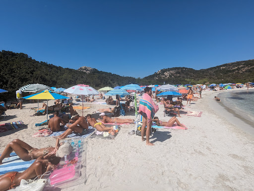 Read moreEin super Strand, der auf dem letzten Teil des Weges nicht ganz einfach zu erreichen ist, aber es lohnt sich ! Der großzügige Parkplatz ist einfach zu finden, von hier aus führt ein kleiner Fußweg (c.a. 10 min.) direkt zum Strand. Der Weg ist sehr schmal und uneben. An einigen Stellen liegt grobes Gestein, so dass man hier auf keinen Fall mit einem Kinderwagen o.ä. lang kann. Auch Menschen die nicht gut zu Fuß sind, sollten das ganze meiden ! Wer am Ende ankommt wird mit feinem Sandstrand und super klarem Meer belohnt. Die Bucht war Mitte Mai nicht besonders voll. Die Bar hatte hier noch nicht geöffnet, so das man auch keine Liegen/ Sonnenschirme mieten konnte. Wer keinen eigenen mit bringt kommt entweder früh genug um einen Platz unter den Schatten spendenden Bäumen zu ergattern oder kauft einen bei dem Strandhändler, der auch Strandmatten und Co direkt vor Ort im Angebot hat. Für welchen Preis weiß ich aber nicht. Der Strand ist sehr sauber, es stehen auch reichlich Mülltonnen und zwei Aschenbecher (Raucherzone) bereit. Es gab Hinweisschilder, dass Tiere hier nicht erlaubt seien. Trotzdem waren Hunde vor Ort, in der Nebensaison hat das auch keinen gestört, wie es in der Hauptsaison aussieht kann ich nicht sagen. Ich empfehle den Strand vor allem weil er nicht so überlaufen war, sehr feinen Sand hat und durch die Bucht auch ein relativ...