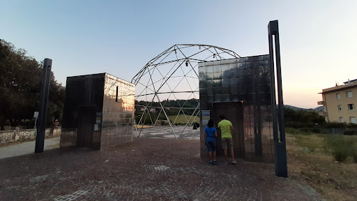La cupola geodetica, brevettata da Fuller nel 1954, riproduce la sfericità schiacciata della terra (geoide). à un qualcosa a metà tra opera d'arte e struttura tecnica: è formata da una combinazione di elementi triangolari prefabbricati in metallo, collegati con giunti nodali, disposti in modo da permetterle di sorreggersi da sola, senza bisogno di muri interni o pilastri di sostegno. La sua costruzione si basa sull'estensione di alcuni principi base dei solidi semplici (tetraedro, ottaedro e solidi con numero di facce maggiori) che possano considerarsi approssimazione della sfera. Ne risulta una struttura estremamente leggera ed allo stesso tempo stabile, di basso costo, facile da trasportare e semplice nel montaggio. Coperta con un telo diventa un ambiente utilizzabile per spettacoli off, conferenze, recital e mostre d'arte. Nel tempo ha ospitato eventi artistici di vario interesse: happening, installazioni, performance e concerti. Lo stesso Fuller la inaugurò con una lezione di meccanica razionale e con dimostrazioni di "balletti della mente". Spoletosfera misura circa 21 m. di diametro. Collocata a sud del centro storico della città , di fronte alla Casina degli ippocastani, in un'area verde tra viale Matteotti e viale Martiri della Resistenza, è oggi divenuta parte integrante del...