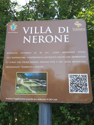 I ruderi della Villa di Nerone sono importanti in quanto costituiscono la testimonianza più concreta - sebbene ridotta ai minimi termini - della struttura correlata ai Simbruina Stagna, la villa che l'Imperatore si fece costruire a Subiaco prima del 60 d.C. Altro motivo di interesse è dato dal fatto che questi ruderi comprendono il primo insediamento benedettino della storia: proprio qui San Benedetto realizzò l'Oratorio di San Clemente, il primo dei monasteri da lui fondati. Di questa struttura (VI secolo) è ancora possibile vedere quello che probabilmente ne costituì l'abside. Per motivi di sicurezza oggi i ruderi risultano non visitabili, tuttavia è possibile ammirarli dalla strada e dalla scalinata che percorrono il perimetro dell'area...