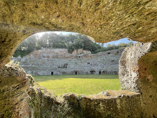 This is a fascinating place for fans of history and all things ancient. The coliseum here is much smaller than what Rome has to offer, but it is unique because it is entirely carved into the natural stone in the Etruscan tradition. You can walk along the cool dark corridor that circumnavigates the space, and let your imagination run rampant as to what it might have been like thousands of years ago. There’s also a spot where you can climb up designated steps and look down the large open grass space and get a sense of the perspective audience members had.