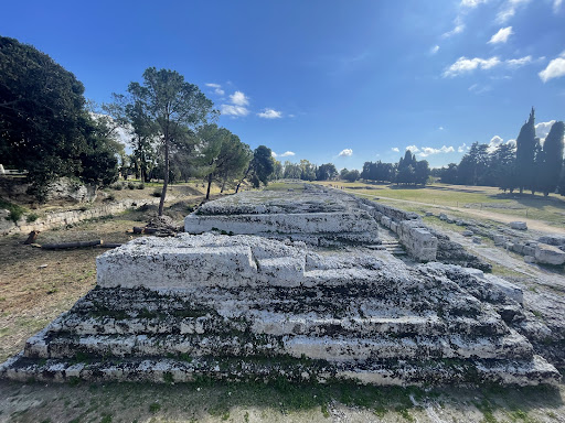 Read more"Ara" è un termine latino che significa "altare", ossia un manufatto più o meno monumentale che serviva per celebrare riti sacri ed offrire doni alla divinità. Lo storico Diodoro Siculo narra che a Siracusa, nei pressi del teatro, si trovava un enorme altare fatto costruire nel 466 a.C. da Ierone II per celebrare l'avvenuta espulsione del tiranno Trasibulo, che - per dimensioni compatibili - in molti ritengono debba identificarsi con questo monumento, anche se le spoliazioni del periodo spagnolo ne abbiano lasciato soltanto un mastodontico basamento lungo quasi 200 mt. Sempre da Diodoro sappiamo che dopo l’allontanamento di Trasibulo venne celebrata una festa di liberazione in onore di Zeus, durante la quale vennero sacrificati addirittura 450 tori in un sol giorno, un numero che effettivamente spiegherebbe le dimensioni di questo altare. Per questi motivi si pensa che quest'ara sia stata edificata dallo stratega siracusano e dedicata al capo di...
