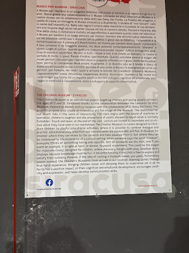 Our recent visit to the Archimede & Leonardo Museum in Ortigia, while full of potential, unfortunately fell short of expectations—particularly for families with children under the age of 12. We would not recommend this museum for families with younger children, as the experience is likely to be disappointing for them, and by extension, frustrating for the whole family.