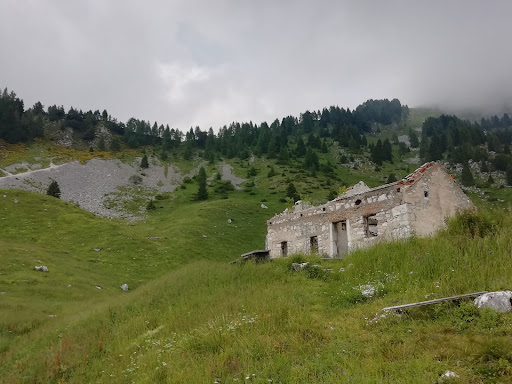 Read morePurtroppo la casera è diventata un rudere abbandonato a se stesso dopo l'incendio che l'ha distrutta una notte di qualche anno fa.... Il proprietario evidentemente ha pensato che dopo i sacrifici fatti per ristrutturarla non ne valesse più la pena riprendere il discorso e così ora la troviamo diroccata con i segni di quel incendio... Il posto è stupendo in una conca prativa tra le più belle, alle pendici del Palantina... Ora trovano regno le...