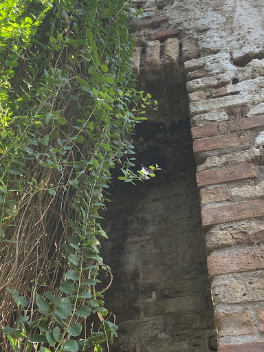 The red brick wall and rectangular niches are a historical monument. The Roman fixed construction dates from around the 2nd century.
