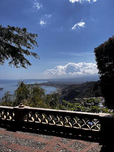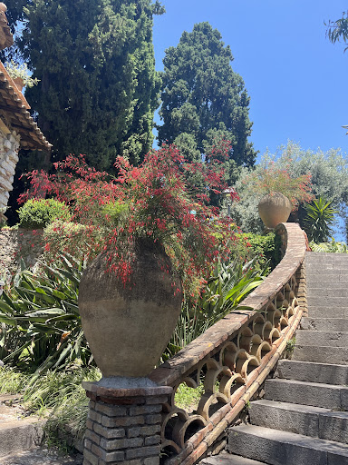 Kært barn har mange navne - parken kaldes også Parco Comunale, Villa Comunale di Taormina, Parco Florence Trevelyan eller Florence Trevelyan Garden efter den imponerende skotske overklassedame, der oprettede den sidst i 1800-tallet. Florence Trevelyan kaldte selv stedet "Hallington Siculo" ("det sicilianske Hallington") efter det familiegods hvor hun voksede op i barndommen - ungdommen og den første del af voksentilværelsen tilbragte hun ved Dronning Victorias hof. Parken kaldes såmænd også “Parco G. Colonna, Duca di Cesarò" efter en politisk ærkefjende til Florence Trevelyans ægtefælle. En afslappende oase midt i turistbyen Taormina. Der er gratis adgang, og der er både bænke, borde og en stor legeplads. Der er gode offentlige toiletter og sågar en hundepark. Der er også flere gode udsigtspunkter i haven, især til Giardini-Naxos og til Etna. Bevares - der er ikke noget i vejen med turister - jeg er jo selv en af dem - men det er velgørende at finde et så roligt og indbydende sted, så kort fra turistvrimlen. Trevelyan var blevet gelejdet ud af England med en pose penge af Dronning Victoria efter en påstået affære med tronarvingen, den senere kong Edward VII (der allerede var gift med den danske prinsesse Alexandra). Da hun kom til Taormina, mødte hun en prominent lokal borger, Salvatore Cacciola, Professor i Patologisk Histologi ved Universitetet i Padua, som hun senere blev gift med. Parret købte i første omgang en lille ø, som de kaldte Isola Bella. Det er den, der senere blev en turistmagnet i klasse med det nærliggende Taormina. Da Cacciola senere blev Taorminas borgmester, et embede han bestred gennem tyve år, købte de et stort antal grunde og boliger, hvor hun anlagde haven og fik bygget flere såkaldte "follies" (bizarre, formålsløse bygninger) der på den tid var populære i den engelske overklasse. Hun brugte dog faktisk selv bygningerne til at studere fugle. Det påstås, at Edward VII flere gange har aflagt besøg i parken - selvfølgelig først efter dronning Victorias død. Florence Trevelyan var en farverig og begavet person, bl.a. en tidlig forkæmper for naturbevarelse, og hvis man gerne vil vide mere end de skrøner og rygter der trives om hende (og som jeg har hentydet til ovenfor), så er den engelske Wikipedias artikel om hende et godt udgangspunkt. Den italienske Wikipedia har også et opslag om...
