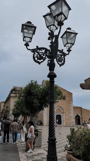 Read moreZ náměstí „Piazza IX. Aprile ústí do hlavní ulice Corso Umberto městská brána „Porta di Mezzo“, která byla součástí třetího městského opevnění a oddělovala středověkou část města od starověké Řecko– římské části Taorminy. Byla postavena ve 12. stol. na zbytcích starší obranné zdi pocházející ze 4. stol. př. n. l. Během invaze francouzských vojsk Ludvíka XIV. (krále Slunce) v roce 1676 byla srovnána se zemí. Ale už o 3 roky později byla postavena nová brána a na její věž umístěny hodiny, které jsou na ní dodnes. Od té doby se věži začalo říkat „Torre dell´Orologio“ (hodinová věž). Mechanické hodiny pocházejí z roku 1800 a jsou unikátním kusem spočívajícím na litinovém podstavci s uchycením „Chevalier“. Hodinový stroj je vyroben z kalené oceli, mosazi a má robustní bronzové převody. Součástí hodin je také kyvadlo zvané Galileo s velmi přesným nastavením, které se ale musí každých 48 hodin natahovat. Věž byla osazena zvony až v roce 1881 a na jednom z nich je vyryto jméno tehdejšího starosty a různých hodnostářů. Zvláštností je, že se zvony na věži rozezní jen v den volby starosty a u příležitosti slavnostního procesí v den svátku patrona Taorminy svatého Pankráce, který připadá na 9. července, den jeho mučednické smrti. Pankrác byl poslán svatým Petrem na Sicílii v roce 40 n. l., aby se stal prvním biskupem města Tauromenium (dnešní Taormina), ale tam byl ukamenován Pohany, kteří byli odpůrci nového náboženství. Svatý Pankrác je uctíván v římskokatolické i v pravoslavné církvi...