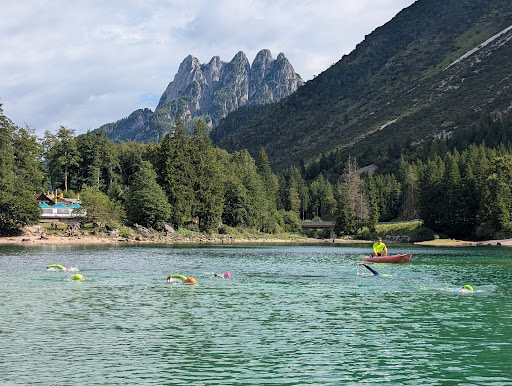 Read moreThe stunning, mirror-like Lago del Predil offers a 1-square-kilometer crystal-clear swimming spot. It’s safe as you can swim alongside the shore, with many places to stash your belongings beneath a rock or a tree - wonderful for solo swimmers. The lake is located at an altitude of 1,000 m, which lowers the water temperature to 17°C during the summer. So bring a full wetsuit. Additionally, a nice coffee shop, Chalet Al Lago, is located next to the parking lot. For more endurance sports suggestions, check out @triathlontrips on Instagram...